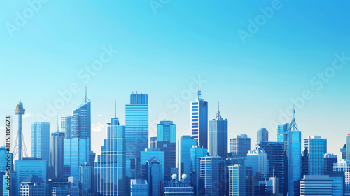 © Chatchanan, Obraz premium A modern city skyline with iconic landmarks and a clear blue sky