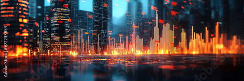© Uwe, Naklejka premium A modern city with shining forex charts isolated