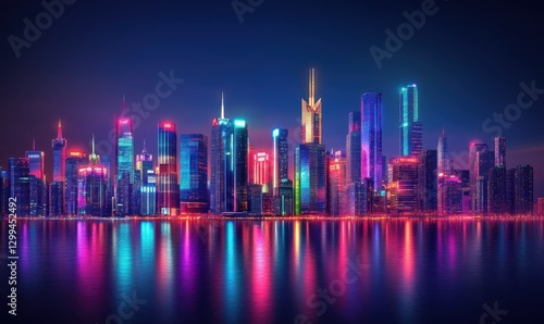 Fototapeta premium A modern cityscape with bright neon lights, symbolizing energy, creativity, and urban innovation.