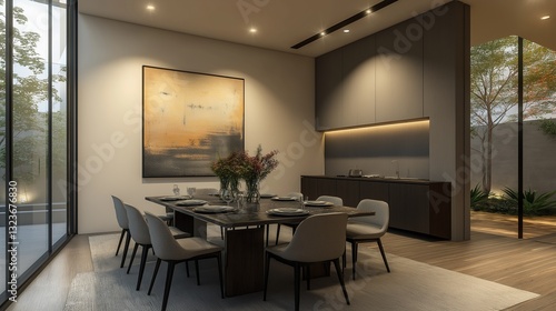 Fototapeta premium A modern, contemporary dining room interior with a stylish and minimalist style.