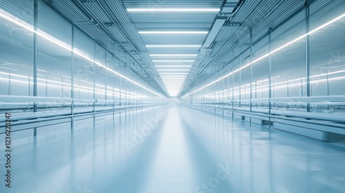 © Dara, Obraz premium A modern dairy barn with rows of cows and a clean, organized interior designed for efficient dairy farming.