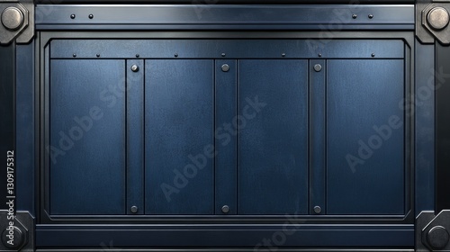 Fototapeta premium A modern dark blue metal workshop background with deep grooves and polished steel.
