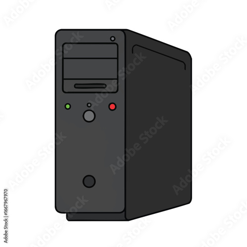 Fototapeta premium A modern desktop computer tower, presented as a minimalist 2D flat vector...