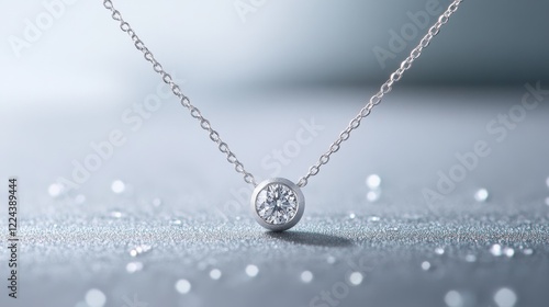 © Artittaya, Fototapeta premium A modern diamond necklace on a minimalist gray background with subtle gradients