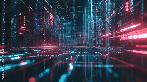 © Natchooda, Obraz premium A modern digital tech banner with global network connections and data processing lines, showcasing global technology trends and innovation