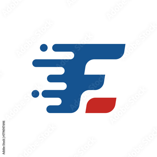 Obraz premium A modern, dynamic logo featuring a stylized letter F and E in blue and red with speed lines, suggesting fast delivery or progress.