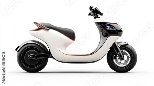 Obraz premium A modern electric scooter with sleek lines and a digital display, isolated on a white background