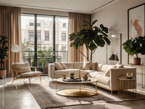 © Alaska young, Fototapeta premium A modern elegant living room with natural light and decor
