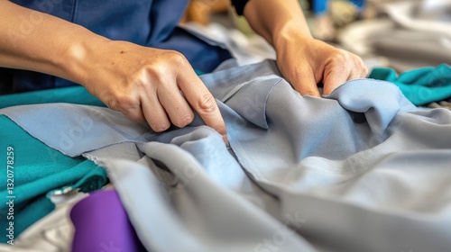 © Pannee, Fototapeta premium A modern fabric finishing process applying anti-wrinkle coating.