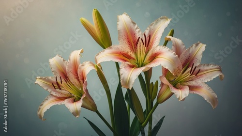 Fototapeta premium A modern flat design wallpaper depicting amazing lily flowers soft dreamy...