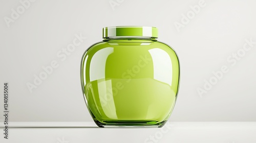 Fototapeta premium A modern green glass jar on a minimalist surface, showcasing its elegant...