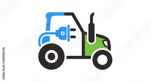 © Roy Arifin, Fototapeta premium A modern green tractor icon featuring an integrated blue electric charging plug for sustainable farming.