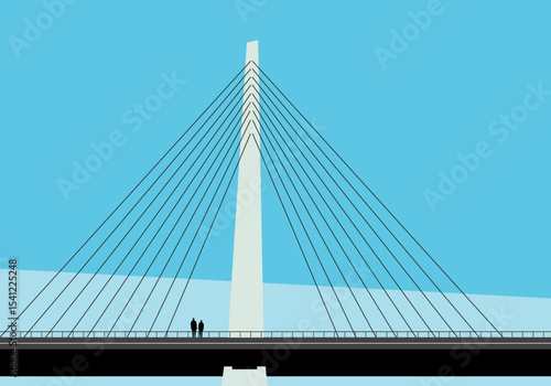 © Jayd, Naklejka premium A modern hanging bridge with a couple standing on it minimal vector.