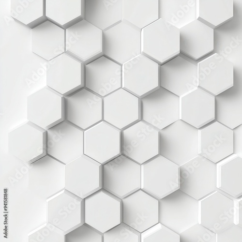 © praewpailyn, Naklejka premium A modern hexagonal pattern in clean white, ideal for backgrounds or design projects requiring a sleek and simple aesthetic.