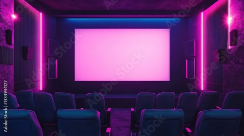 Fototapeta premium A modern home cinema room illuminated with neon lighting