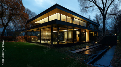 Fototapeta premium A modern home with a transparent view of its underground plumbing system,...