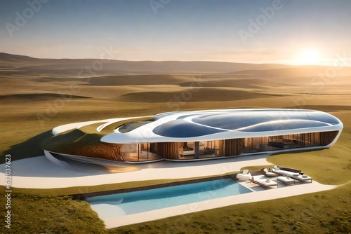 © MuhammadTalha, Fototapeta premium A modern house in the dessert - Generative AI