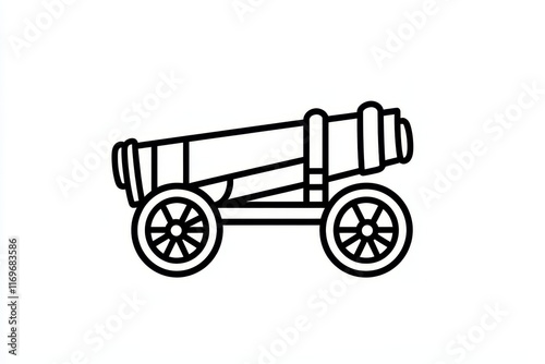 Fototapeta premium A modern icon illustration of a Cannon and Carriage, designed for naval battles or defense, featuring a line art, silhouette on a white background