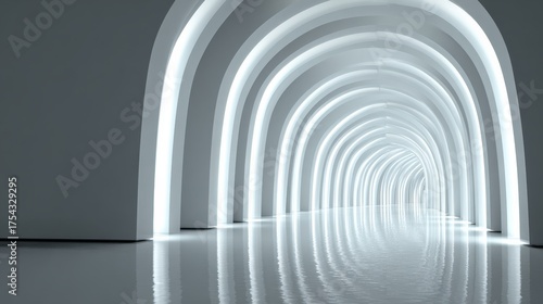 © Pule Stock, Obraz premium A modern, illuminated tunnel creating a sleek and futuristic ambiance. The reflective floor enhances its design.