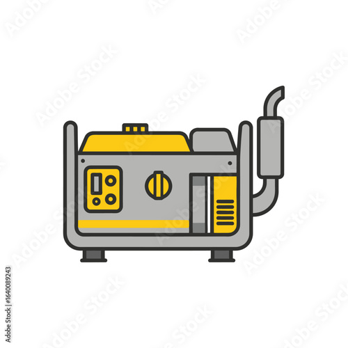 © Luky, Fototapeta premium A modern illustration of a portable gasoline generator with a yellow and gray color scheme.