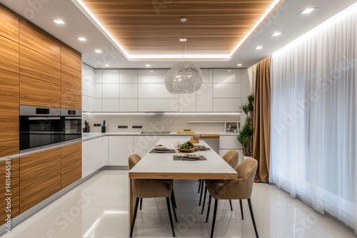 © Alokya, Fototapeta premium A modern kitchen dining area with stylish minimalist design