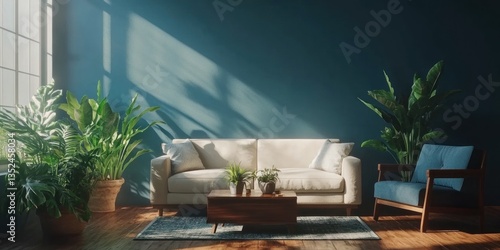© rach, Fototapeta premium A modern living room features plants and natural light inside