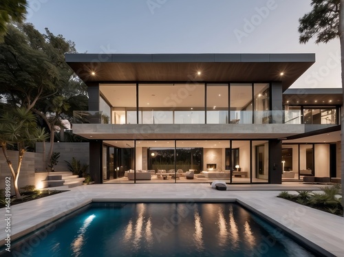 © SADEWA, Fototapeta premium A modern luxury home exterior design featuring clean lines