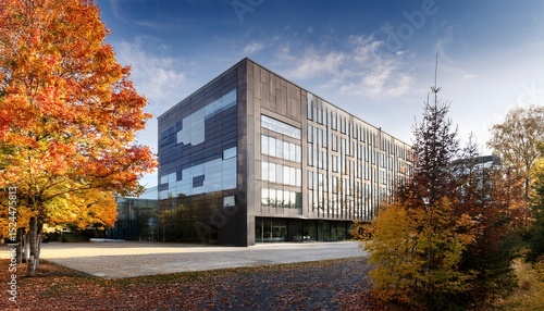 Obraz premium a modern office building surrounded by trees in the fall