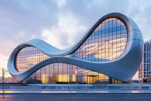 Obraz premium A modern office building with a unique shape