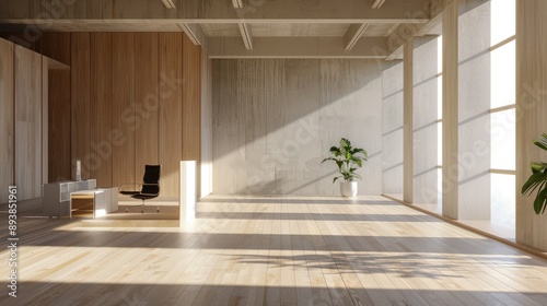 © Johannes, Fototapeta premium A modern office interior with a minimalist design and natural light, great for adding a clean and spacious look to designs