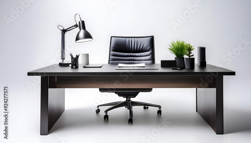 Fototapeta premium A modern office space with a dining area featuring a table and chairs,...
