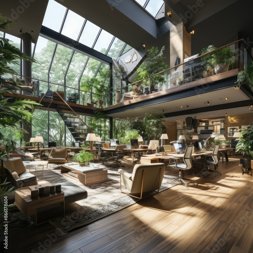 Naklejka premium a modern, open - concept office space with natural light, ergonomic...