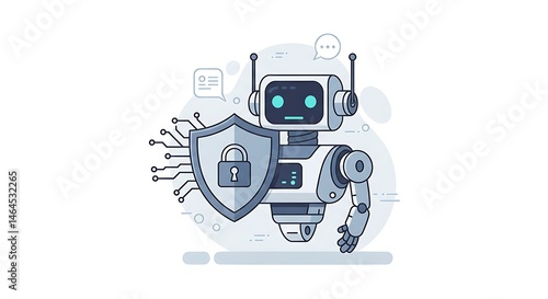 Fototapeta premium A modern robot with a shield protects the digital world in a cool and...
