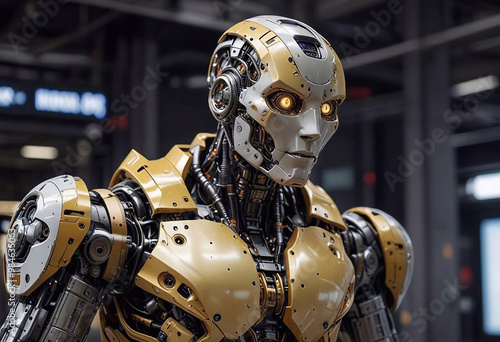 Fototapeta premium A modern robot with a sleek metallic design, expressive eyes and visible...