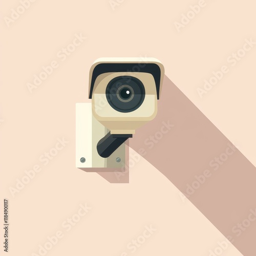 Fototapeta premium A modern security camera illustration mounted on a light wall, featuring a minimalist design and soft shadows.