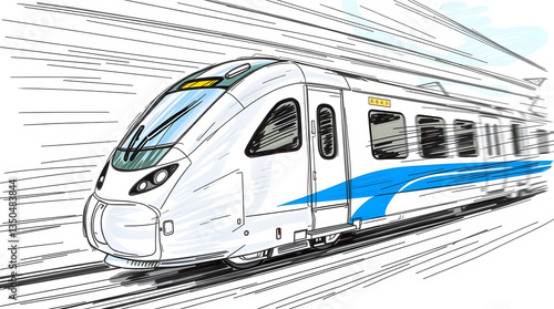 © Zilvinas, Naklejka premium A modern, sleek train at a station, depicted in vibrant, artistic digital rendering.