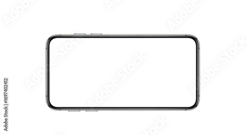 Fototapeta premium A modern smartphone with a blank screen is positioned horizontally, isolated...