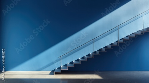 Obraz premium A modern staircase with sleek metal railings ascending towards a large