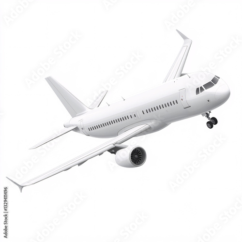 © youriy, Obraz premium a modern white commercial airplane in mid flight with a clean design and visible engines soaring against a plain background