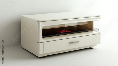 © aritha, Fototapeta premium A modern white kitchen appliance with a sleek design and a digital display.