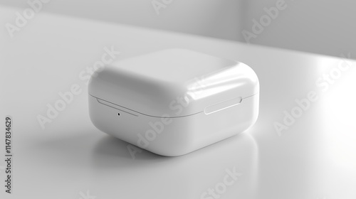 © Arfana, Fototapeta premium A modern wireless earbud case with a matte finish, isolated on white.