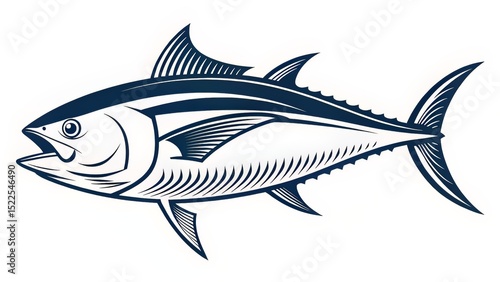 Fototapeta premium A modernist tuna fish icon with clean line geometry and stylized motion, ideal for ocean-themed branding.