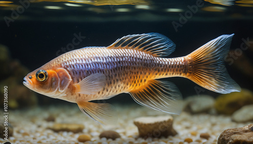 © StocksJust4You, Fototapeta premium A Molly Fish swimming in crystal-clear water with a natural background. Suitable for marketing or business purposes