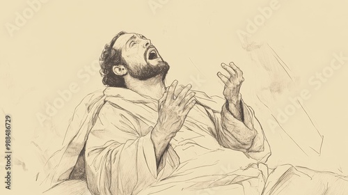 Obraz premium A Moment of Fear: Biblical Illustration of Haman Realizing the Gravity of...
