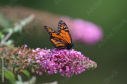 © Lisa Basile Ellwood, Fototapeta premium A monarch butterfly feeding on a butterfly bush