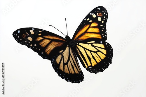 © Alla, Fototapeta premium A monarch butterfly soars through the air