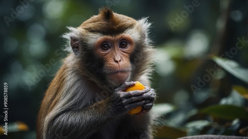 © Oleksandr, Fototapeta premium A monkey drinking from a clear, cool stream in the jungle