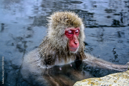 © GennadiiErmolaev, Obraz premium A monkey in a hot spring Japan