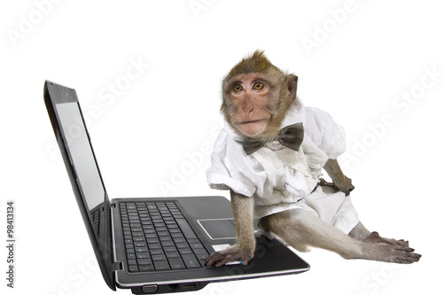 © Irina K., Naklejka premium A monkey in a suit with a laptop