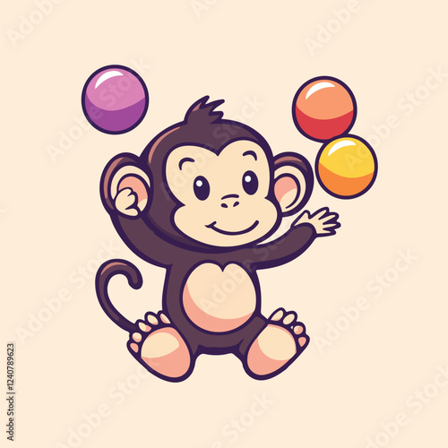 © Shabnam, Obraz premium A monkey playing with a toy with a happy vector illustration